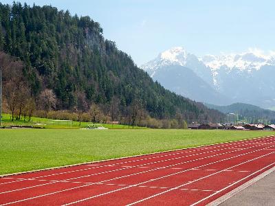 Trainingsgelände für Leichtathletik TrainingslagerNur etwa 800 Meter vom Hotel entfernt befindet sich das Leichtathletik-Stadion von Bischofswiesen. Dieses besitzt vier Tartan-Rundlaufbahnen und sechs 100 Meter Sprintbahnen. Weiterhin sind eine Weitsprunggrube sowie eine Hochsprunganlage nutzbar.