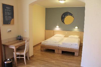 ZimmerDie 53 modern ausgestatteten Zimmer sind jeweils einem Planeten zugeordnet und mit entsprechenden Möbeln und Farben ausgestattet, einige davon erstrecken sich ĂŒber zwei Etagen. Die meisten Mehrbettzimmer sind Vierbettzimmer. Sie verfĂŒgen ĂŒber getrennte Dusche und WC, Föne sowie Flachbildfernseher, einen Tisch und StĂŒhle. Die Zimmer in der ersten Etage haben Balkone. ZusĂ€tzlich stehen acht Zimmer mit behindertengerechter Ausstattung zur VerfĂŒgung.