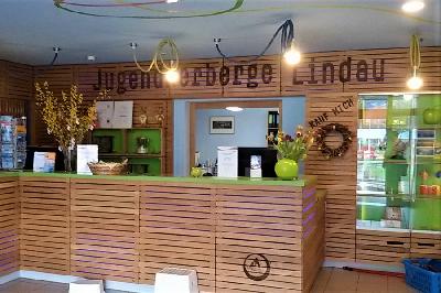 HotelausstattungDie Jugendherberge in Lindau liegt zentral und wird von Reisenden aller Altersstufen, Familien wie Gruppen, sehr gut angenommen. In unmittelbarer Nähe befinden sich das Einkaufszentrum Lindaupark, das Limare Hallenbad und auch See, Altstadt und Stadion sind in wenigen Minuten zu erreichen. Die Kapazitäten umfassen 244 Betten in 71 Zimmern, angeboten werden Einzel- bis Sechsbettzimmer. WLAN ist in der Lobby gratis verfügbar. Ein großer moderner Speisesaal gehört ebenso zur Herbergsausstattung wie mehrere Seminarräume, ein Dachstudio u. a. mit Liegekino, ein Bistro, Ausstattung für Tagungen, Waschmaschine & Wäschetrockner (Räumlichkeiten und Ausstattung kann auf Anfrage mitgebucht werden) ein Mehrzweckraum mit Freizeiteinrichtung und mehrere kleine Aufenthaltsräume. Das Essensangebot umfasst ein sehr reichhaltiges Frühstücksbuffet, Lunchpaket zu Mittag (warmes Mittagessen ab 25 Personen möglich) und ein warmes Abendessen mit Salat- und Dessertbuffet sowie Fruchtsäfte und Mineralwasser. Sonderverpflegungswünsche werden bis 8 Wochen vor Anreise gerne entgegengenommen (Vegetarier, Gluten- und Laktoseunverträglichkeit). Bewährt hat sich die Hinterlegung einer Kaution in Höhe von 200,-- , die Gruppen bei Anreise hinterlegen und bei Abreise ohne Zimmerschäden, Schlüsselverluste, etc. wieder komplett retourniert werden.