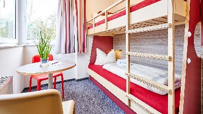 HotelausstattungDie zertifizierte Sport Jugendherberge verfügt über 245 Betten (Ein- bis Vierbettzimmer), 15 Leiterzimmer inkl. Dusche/WC, drei Speiseräume, zehn Freizeit- und Seminarräume (bis 80 Personen), Aula (bis 200 Plätze), Fernsehraum, Billard, Kicker, Tischtennis, Sportplatz und Beachvolleyball, Boule und Spielplatz. Die sportlergerechte Verpflegung kann als Halb- oder Vollpension gebucht werden, Frühstück und Abendessen erfolgen in Buffetform, Mineralwasser und Apfelsaftschorle stehen den ganzen Tag über bereit. Das Küchenteam stellt sich gerne auf Ihre Trainingszeiten und speziellen Essenswünsche ein.