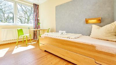 ZimmerDie Unterbringung erfolgt in modern eingerichteten Ein- bis Vierbettzimmern mit Waschgelegenheiten. Je nach Auslastung werden bevorzugt Zimmer mit eigener Dusche und WC bereitgestellt.