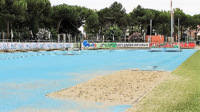 Trainingsgelände für Leichtathletik TrainingslagerTrainiert wird im 1.500 Meter entfernten Leichtathletik-Stadion der Stadt Riccione. Diese Sportanlage wurde 2024 vollständig renoviert und besitzt eine acht-bahnige Tartan-Rundlaufbahn. Disziplinen wie Hoch- und Weitsprung oder Kugelstoßen sind direkt im Stadion trainierbar. Für das Training der Wurfdisziplinen steht den Mannschaften ein separater Werferplatz zur Verfügung.