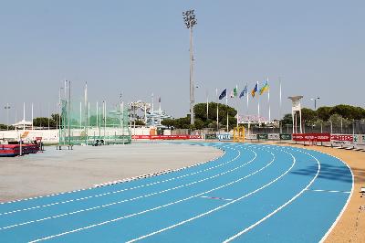 Trainingsgelände für Leichtathletik TrainingslagerEtwa 3.400 Meter vom Hotel entfernt befindet sich das Leichtathletik-Stadion, in dem neben Lauf- und Sprung- auch die Wurfdisziplinen trainiert werden können. Es besitzt sechs neue blauen Mondobahnen, mehrere Weitsprunggruben, eine Stab- und Hochsprunganlage, Kugelstoßringe, sowie einen Werferkäfig für Hammer und Diskus. Auf einer Seite des Stadions gibt es weiterhin noch eine Anlaufbahn für Speerwerfer. Trainingsmaterial kann auf Anfrage ausgeliehen und genutzt werden.