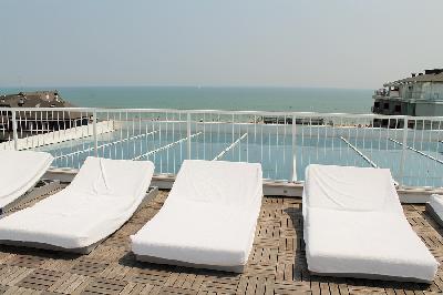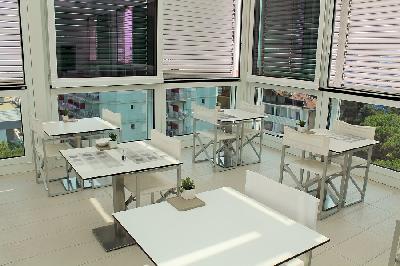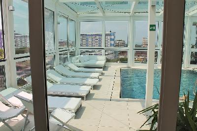 HotelausstattungDas Hotel besteht aus zwei Gebäuden - dem Haupthaus mit 62 Zimmern und dem Dependance-Gebäude mit 22 Zimmern. Beide Gebäude werden ab Ostern eines Jahres betrieben. Die Saison dauert meist bis Ende Oktober. Im Erdgeschoss des Hauses befindet sich das große Restaurant. In der obersten Etage finden die Gäste zusätzlich noch eine Bar, eine Sonnenterrasse und einen Indoor-Pool mit Süßwasser gefüllt vor. Im Keller kann ein Mehrzweckraum für Besprechungen genutzt werden. Ein kleiner Gang mit einigen Fitnessgeräten und ein Wellnessbereich mit Sauna, Erlebnisduschen und Ruheareal befinden sich ebenfalls im Hotel.