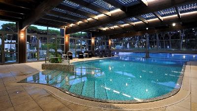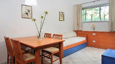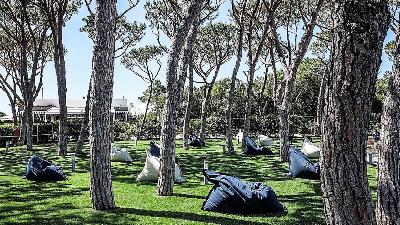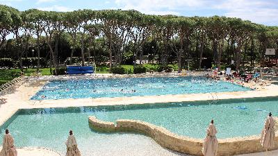 HotelausstattungDas Resort besteht aus einem 4* Hotel mit 155 Zimmern sowie 182 Ferienhäusern (3*) und liegt inmitten eines Pinienwaldes, direkt an einem kilometerlangen - im Bereich des Hotels privaten - Strandabschnitt. Dazu stehen mehrere Pools, ein umfangreicher Wellness- und SPA-Bereich sowie ein Fitnesscenter mit hochwertigen Fitness- und Cardiogeräten zur Verfügung. Restaurant, Pizzeria & Grill sowie Lounge-Bar sorgen dafür, dass auch die Kulinarik nicht zu kurz kommt.