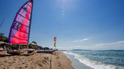 Strand/BademöglichkeitDas Resort liegt direkt an einem kilometerlangen, flach abfallenden Sandstrand, der für Erholung wie auch Training ideale Voraussetzungen bietet. 600 Meter davon befinden sich in privatem Besitz des Ferienresorts.