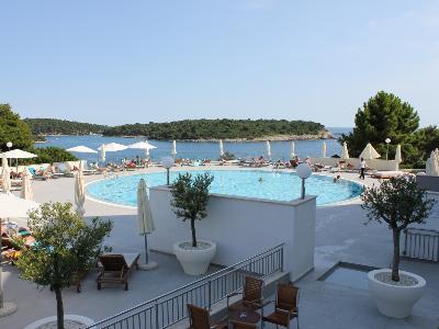 HotelausstattungDas schöne First Class Hotel ist seit Jahren eine Institution in Pula und wurde 2012/2013 sehr aufwendig renoviert. Es bietet nun eine hochmoderne und stylische Einrichtung und verfügt über ein Restaurant, eine Pianobar, eine Sonnenterrasse mit Lounge Bar, eine Poolbar, ein Konferenzzentrum für bis zu 700 Personen, drei Executive-Sitzungsräume für kleinere Gruppen, mehrere Swimmingpools, einen Indoor-Pool und einen schönen Wellnessbereich mit Fitnesscenter. Die Anlage besteht aus dem Hauptgebäude, einem Flügel sowie einer Appartement-Siedlung.