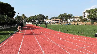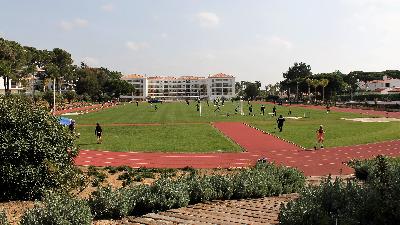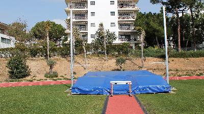 Trainingsgelände für Leichtathletik TrainingslagerDie neuwertige Laufbahn (Tartan) besteht aus vier Rundbahnen und sechs Bahnen auf der Sprintgeraden. Zusätzlich sind je eine Hoch- und Stabhochsprunganlage, eine Kugelstoß- und Speerwurfanlage sowie zwei Weitsprunganlagen vorhanden. Materialien wie Hürden, Hütchen und Startblöcke stehen zur Verfügung.