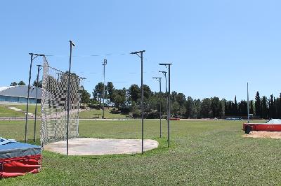 Trainingsgelände für Leichtathletik TrainingslagerDirekt auf dem Gelände finden die Sportler ein Stadion vor, das mit 6 Tartanbahnen ausgestattet ist. Hier sind alle Disziplinen möglich. Für Wurfdisziplinen steht ein separater Platz mit drei Käfigen zur Verfügung. Darüberhinaus gibt es zwei Sprintbahnen mit unterschiedlichen Gefällen an einem Hang gelegen. Auch eine überdachte Leichtathletik-Anlage mit 125m Länge und vier Bahnen ist vorhanden. Trainingsgeräte wie Speere und Kugeln können vor Ort ausgeliehen werden.