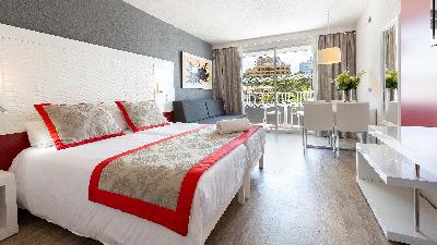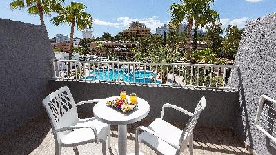 ZimmerDie 185 hell und modern gestalteten Zimmer verfügen über eine Küchenzeile, vollausgestattetes Bad, Balkon oder Terrasse, Klimanlage, Flatscreen SAT-TV, WiFi, Kühlschrank und Safe.