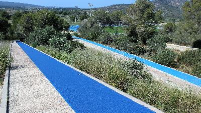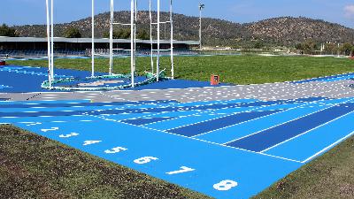 Trainingsgelände für Leichtathletik TrainingslagerDas rund 1.000m vom Hotel entfernte Leichtathletik-Stadion von Magaluf wurde vor Ostern 2019 frisch renoviert und erstrahlt mit neuem blauen Mondo-Belag.