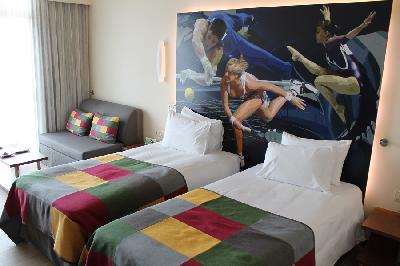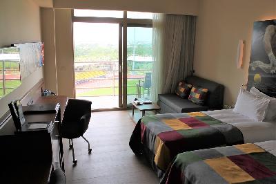 ZimmerDie freundlich eingerichteten Zimmer lassen Sie nicht vergessen, weshalb Sie hier sind. Sie haben direkten Blick auf die Leichtathletik-Anlage und die Wanddekoration besteht aus Gemälden mit Sportmotiven. Balkon, TV mit Flatscreen, Couch und Minibar gehören ebenfalls zur Zimmer Ausstattung, wie das helle Bad/WC mit Duschkabine.