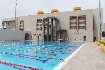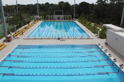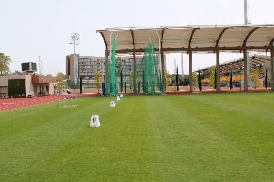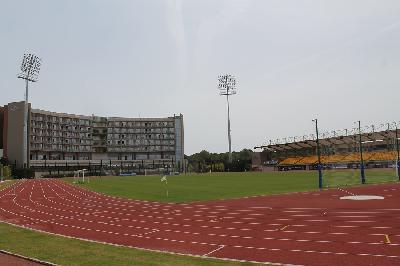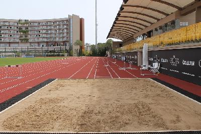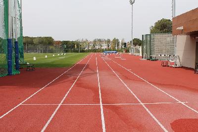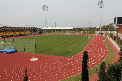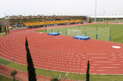 Trainingsgelände für Leichtathletik TrainingslagerAuf der IAAF zertifizierten Leichtathletik-Anlage (Klasse 2) finden Sie folgende Möglichkeiten vor: Acht 400m Rundbahnen, vier 120m Indoor Sprintbahnen, 1,7 Km Laufstrecke auf Naturwegen, drei Sprunggruben für Weit- und Dreisprung (plus eine Sprunggrube indoor), zwei Wurfkäfige für Hammer- und Diskuswurf, acht Kugelstoßanlagen, drei Speerwurf Anlaufbahnen, je zwei Anlagen für Hoch- und Stabhochsprung, zwei Laufbahnen mit 1,5 bzw. 2,5 Grad Neigung, Material für alle Disziplinen und zur Zeit- & Sprungmessung.